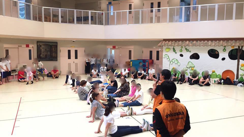 児童センターで、運動遊び教室を実施した際の模様です。地元の子ども達がイベントとして開催された鬼ごっこイベントに参加を頂いています。この写真は、歴史的な鬼ごっこである「ことろことろ」を楽しんでいる瞬間です。